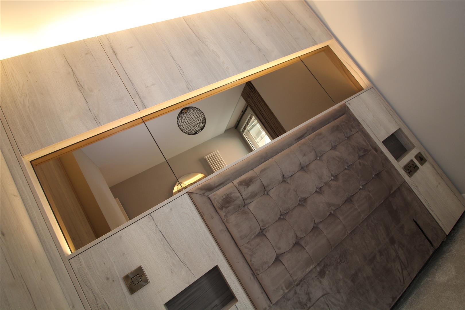 Bedroom has been refurbished with made to measure furniture including mood lighting, headboard, wardrobes and drawers.